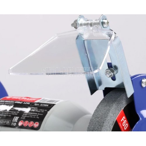 Станок заточной. Мощность 200 Вт Напряжение питающей сети 230 В Частота тока 50 Гц Тип электродвигателя Асинхронный Материал основания станка литой алюминий Тип заточного диска 1 (ПП) Диаметр посадочного отверстия заточного диска 32/25,4 мм Наружный диаметр заточного диска 125 мм Толщина заточного диска 16 мм Частота вращения заточного диска 2850 об./мин. Зернистость F36/F60 грит Вид абразива электрокорунд 15А Твердость N (средняя) Вид связки V (керамическая) Тип структуры 7/5 (средняя) Длина электрошнура 1,5 м Уровень звукового давления (шума) 73 дБ Габаритный размер (Д х Ш х В) 280 х 260 х 260 мм
