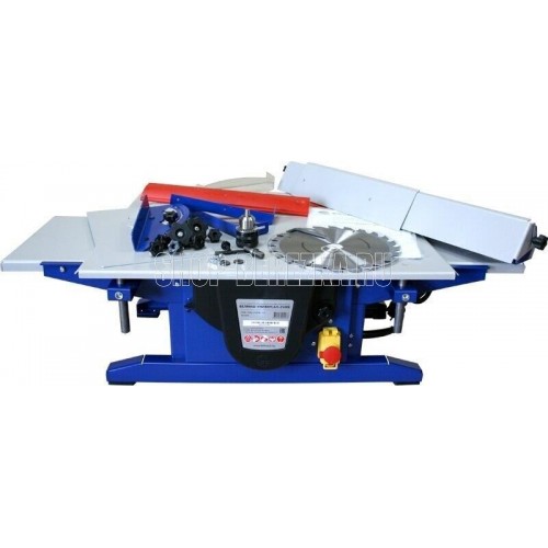 Станок деревообрабатывающий. Мощность 2500 Вт Напряжение питающей сети 230 В Частота тока 50 Гц Тип электродвигателя Асинхронный Диаметр пильного диска 250 мм Частота вращения пильного диска 5200 об/мин Диапазон углов распиловки вдоль волокон с помощью параллельного упора 0-45 ° Посадочный диаметр пильного диска 30 мм Диапазон углов распиловки по торцу -45...+45 ° Максимальная толщина распиливаемого материала 88 мм Размер пильного стола (Д х Ш) 646 х 556 мм Частота вращения ножевого вала 5200 об/мин Максимальная ширина строгания 270 мм Размер строгальных столов (Д х Ш) 955 х 286 мм Диапазон углов строгания с помощью параллельного упора 0-45 ° Количество ножей на валу 2 шт. Угол заточки ножей 40 ° Частота вращения дисковой фрезы 5200 об/мин Диаметр дисковой фрезы 125 мм Максимальная толщина дисковой фрезы 10 мм Посадочный диаметр дисковой фрезы 30 мм Частота вращения шпинделя 5200 об/мин. Диаметр хвостовика зажимаемого инструмента 13 мм Максимальная глубина строгания 3 мм