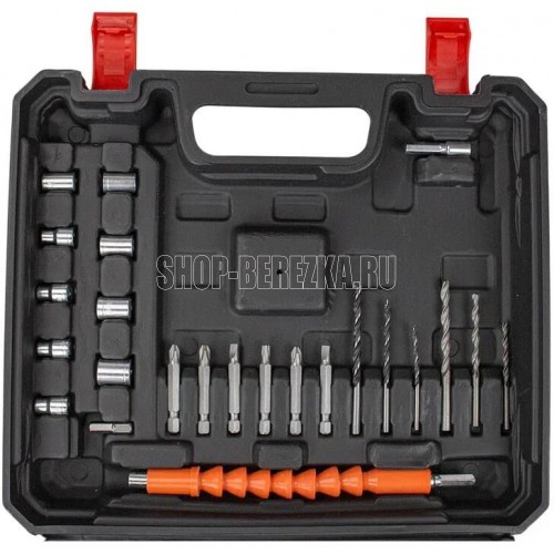 Напряжение питания, В 16 Частота вращения шпинделя на холостом ходу (I/II скорость), об/мин 0-420/420-1380 Макс.диаметр зажимаемого сверла, мм 10 Регулировка момента 23+1 Макс.крутящий момент, Нм 50 Тип Li-Ion Емкость, Ач 2,0 Напряжение питания, В 220 Частота, Гц ~50 Ток зарядки, А 1,0 Комплектация:Дрель, Аккумуляторная батарея 2шт, Зарядное устройство, Гибкий вал, Набор сверел 6шт, Набор бит 6шт, Набор накидных головок 7шт, Переходник 2шт, кейс пластиковый