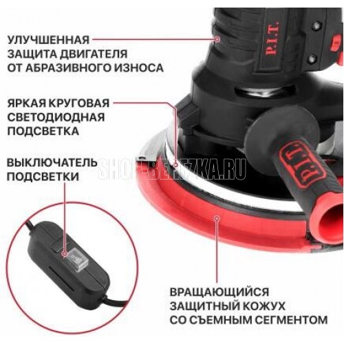 P.I.T. Шлифмашина для стен и потолков электрич. PWG180-C (810Вт, 180мм, 900-2100 об/мин, 2 рукоятки)