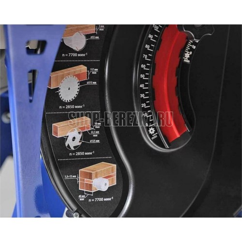 Станок деревообрабатывающий многофункциональный. Мощность 2500 Вт Напряжение питающей сети 230 В Частота тока 50 Гц Тип электродвигателя Асинхронный Диаметр пильного диска 315 мм Частота вращения пильного диска 2850 об/мин Диапазон углов распиловки вдоль волокон с помощью параллельного упора 0-45 ° Посадочный диаметр пильного диска 30 мм Диапазон углов распиловки по торцу -45...+45 ° Максимальная ширина распиливаемого материала, при использовании параллельного упора 300 мм Максимальная толщина распиливаемого материала 117 мм Размер пильного стола (Д х Ш) 872 х 530 мм Частота вращения дисковой фрезы 2850 об/мин Диаметр дисковой фрезы 125 мм Максимальная толщина дисковой фрезы 10 мм Посадочный диаметр дисковой фрезы 30 мм Максимальная высота фрезерования дисковой фрезой 22,5 мм Частота вращения шпинделя 7700 об/мин. Тип ремня 8PJ508 Размер фрезерного столика (Д х Ш) 470 х 190 мм Габаритный размер (Д х Ш х В) 1042 х 576 х 512 мм