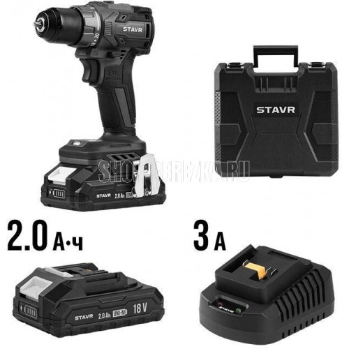 Дрель-шуруповерт аккум. 50Нм, 18V UNI-M, BL, Stavr SDD 18BL-2K, БЗП 10мм, 2 скорости 0-500/1600об/мин, автолок, подсветка (АКБ 2х2.0Ач, ЗУ, кейс)
