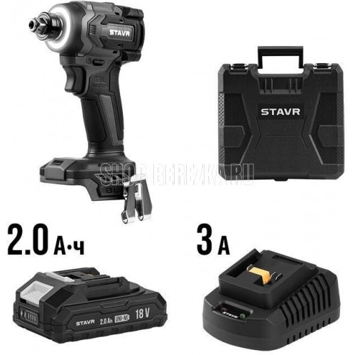 Шуруповерт ударный аккум. 230Нм, BL, 18V UNI-M, Stavr SID 18BL-230V-1K, hex 1/4+1/2",13 реж,1200/1900/2500/3200об/мин,подсветка(АКБ 1х2.0Ач, ЗУ, кейс) ЗАВОРАЧИАНИЕ 4 режима с ударом, различающиеся числом оборотов и максимальным крутящим моментом. + Отдель