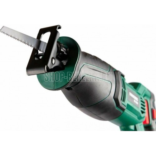 Пила сабельная предназначена для продольного, поперечного, под углом и фигурного пиления заготовок из металла, дерева, фанеры, ДСП, пластмасс, и пенобетона (при установке необходимого полотна). Область применения: Пиление дверных и оконных коробок, стеновых панелей (из гипсокартона, пенобетона), перекрытий, арматуры и т.п; Резка заготовок из различных материалов (дерева, фанеры, металла, пластика) в виде бруса, листов, труб т.д.; Разделка материалов, обрезка конструкций и выпиливание пазов и отверстий под установку различных изделий; Фигурная резка, а также для пиления в неудобных местах (заподлицо с поверхностями, в углублениях, отверстиях). Электроинструмент предназначен для эксплуатации в районах с умеренным климатом с температурой от 10 °С до +40 °С, относительной влажностью воздуха не более 80°/о и отсутствием прямого воздействия солнечного излучения, атмосферных осадков и чрезмерной запыленности воздуха. Мощность 1200 Вт.