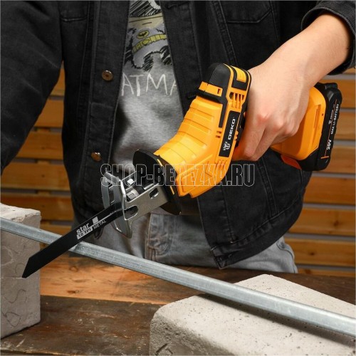 Напряжение АКБ: 20В. Емкость АКБ: 2,0Ач. Кол-во АКБ в комплекте: 2 АКБ Makita-type. Скорость холостого хода: 2600 об/мин. Макс. глубина реза дерева: 200мм. Макс. глубина реза металла: 16мм. Комплектация: 1 шт сабельная пила. 2 шт АКБ. 1 шт зарядное устройство. 4 шт пильное лезвия. 1 шт руководство по эксплуатации. 1 шт кейс.