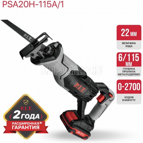 P.I.T. Пила сабельная аккум. PSA20H-115A/1 (20В, 0-2700ход/м, БЗП, 115мм, ход 22мм, 1акб 2Ач, ЗУ)