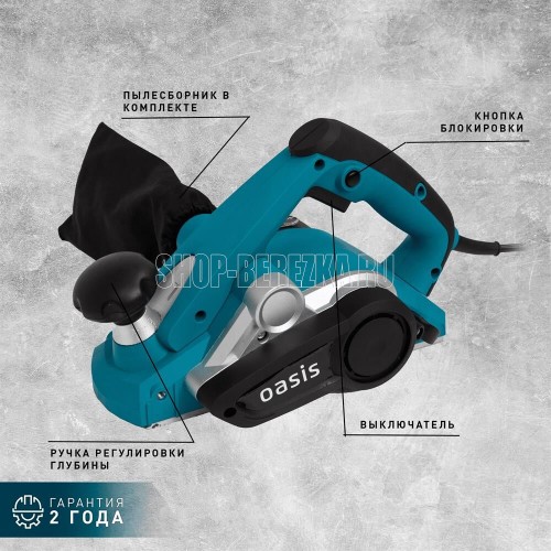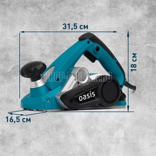Мощность, Вт 1100. Параметры электропитания, В/Гц 220/50. Скорость вращения шпинделя на холостом ходу, об/мин 16000. Ширина строгания за один проход, мм 82. Максимальная глубина строгания, мм 3. Размеры изделия, см 31,5х16,5х18. Вес нетто, кг 2,78.