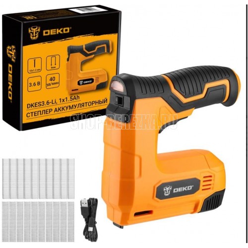 Степлер аккумуляторный DEKODKES3.6-Li, 1х1.5Аh предназначен для крепления тонких деревянных деталей, деталей из масонита или других материалов, требующих надежной фиксации. Обрезиненная рукоятка обеспечивает надежный хват, инструмент не выскальзывает из рук. Небольшой вес способствует долгой работе. Комфортная работа обеспечивается удобным расположением клавиши пуска.Технические характеристики:Напряжение: 3.6 ВЕмкость АКБ: 1500 мАчПроизводительность: 40 уд/минТип скоб: 53 (8 мм)Тип гвоздей: 47 (10x1.2 мм)Емкость магазина (скобы/гвозди): 100/50 штКомплектация:1шт степлер1000 шт ;U-образные скобы 8мм500 шт ;T-образные гвозди 10х1.2мм1шт USB-кабель для зарядки1шт руководство по эксплуатацииПоставляется в картонной коробке.