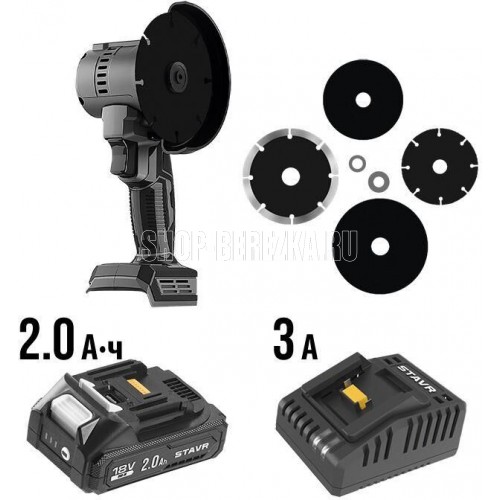 Машина углошлиф. аккум (УШМ), 76 мм, 18V UNI-M, BL, Stavr SAG 18BL-76V-1, диск 76-105мм, посадка 10/16/20мм, 8000-12000об/мин (АКБ 2.0Ач, ЗУ,диск 4шт)