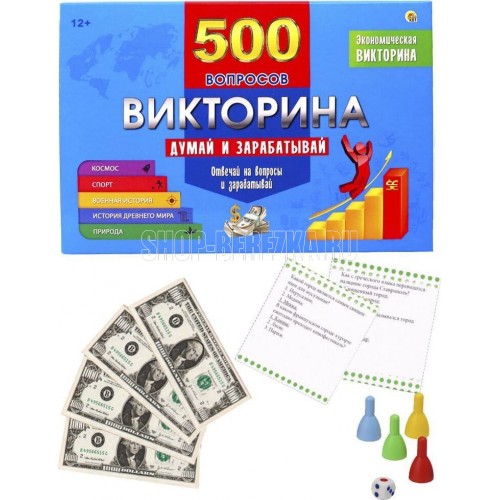 Красочная и яркая игра-викторина на 500 вопросов "Думай и зарабатывай" — прекрасный способ весело и с пользой провести время! Такая интересная игра придется по вкусу как большой компании, так и парочке друзей. Она поможет выяснить, кто здесь самый умный, начитанный и эрудированный.