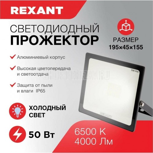 REXANT (605-004) 50 ВТ 200-260В IP65 4000 ЛМ 6500 K ХОЛОДНЫЙ СВЕТ