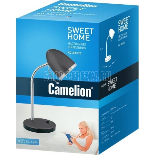 Настольный светильник Camelion KD-308 C02 черный, размер 150х150х240мм, источник света - ЛОН, тип лампы - 40/A/Е27, патрон - E27, мощность 40Вт, 230 В, 50 Гц.