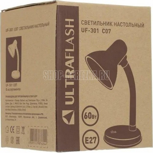 Светильник настольный Ultraflash UF-301 (230V, 60W) С02 черный, размер 190х140х140мм, источник света - ЛОН, тип лампы - 60/А/Е27, патрон - E27, мощность 60Вт, ~230В, 50Гц.