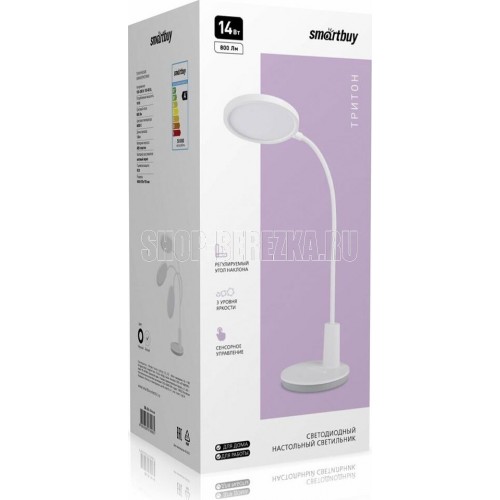 Три уровня яркости. Сенсорное управление. Характеристики SBL-DL-14-r-w Рабочее напряжение 240 В Максимальная мощность 14 Вт Тип лампы Светодиоды Длина кабеля, м 1,8 Размеры, мм 440*150*150 Вес, г 775 Цветовая температура 4000К Световой поток 800 Лм Цвет корпуса Белый