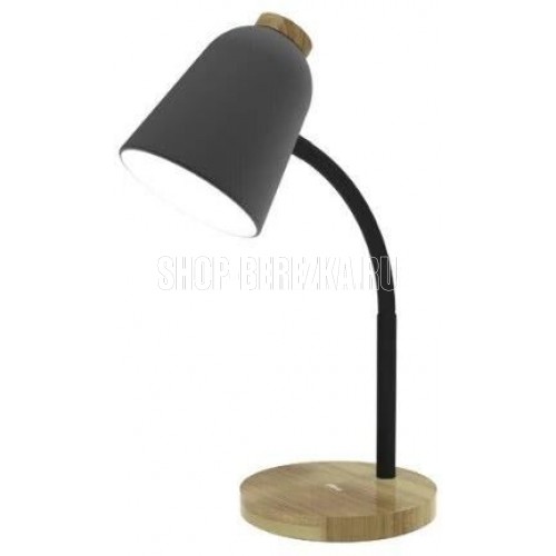 Настольный светильник, цоколь Е27 (до 40 Ватт), на круглой подставке, абажюр металл d.12см, подставка d.15см дерево, высота 50 см. Питание (AC) 220В, встроенный кабель питания 1,5м, с выключателем, длина гибкой ноги 50см. Светодиодная лампочка 7 Ватт в комплекте. Основной материал: металл; с элементами ДСП и резины.