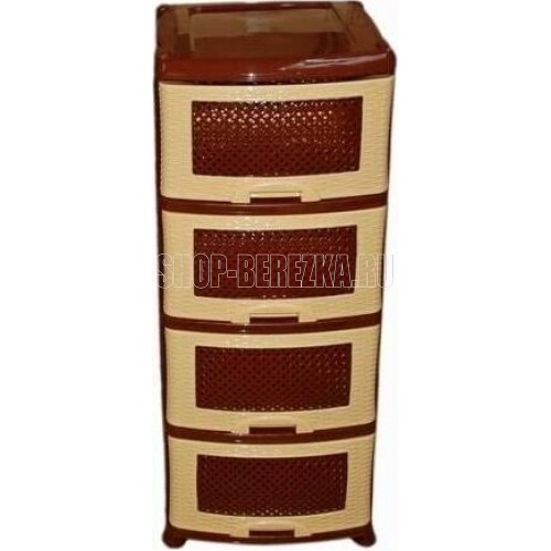 Цвет коричневый. Размер 470 x 390 x 950 мм. Материал Полипропилен. Комод из пищевого пластика с четырьмя выдвижными ящиками предназначен для хранения вещей и продуктов питания и гармонично впишется в интерьер любой комнаты. Легкий и вместительный комод поможет обеспечить порядок, избавит от разбросанных игрушек или одежды, убережет продукты от пыли и заветривания. Узор на передних панелях придаст индивидуальность и подарит настроение. Не рекомендуется размещение пластикового комода вблизи батарей центрального отопления и электрических обогревателей.