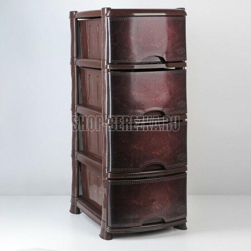 Цвет коричневый . Размер 470 x 390 x 950 мм. Материал Полипропилен. Комод из пищевого пластика с четырьмя выдвижными ящиками предназначен для хранения вещей и продуктов питания и гармонично впишется в интерьер любой комнаты. Легкий и вместительный комод поможет обеспечить порядок, избавит от разбросанных игрушек или одежды, убережет продукты от пыли и заветривания. Передние панели комода декорированы по технологии IML (вплавляемая этикетка) для создания индивидуального стиля. Не рекомендуется размещение пластикового комода вблизи батарей центрального отопления и электрических обогревателей.