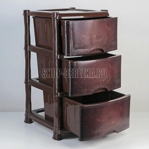 ЦВЕТ: коричневый. РАЗМЕР ИЗДЕЛИЯ: 470 x 390 x 730 мм. МАТЕРИАЛ: Полипропилен. Комод из пищевого пластика с тремя выдвижными ящиками предназначен для хранения вещей и продуктов питания и гармонично впишется в интерьер любой комнаты. Легкий и вместительный комод поможет обеспечить порядок, избавит от разбросанных игрушек или одежды, убережет продукты от пыли и заветривания.