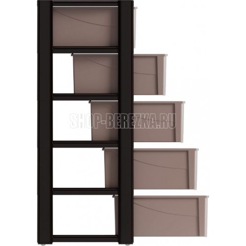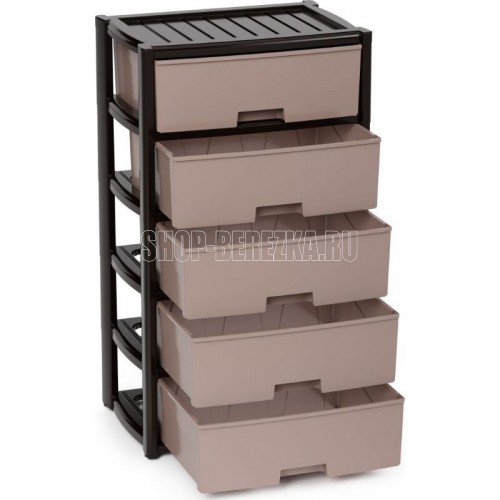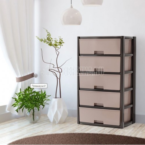 Размеры изделия (ДхШхВ) 560х390х1000 мм, 5-ти секцион. широкий (венге) Комод произведен из высококачественного и безопасного полипропилена. Особую прочность комоду придает его цельная конструкция перегородок. Комод имеет выдвижные и достаточно вместительные ящики. На крышке и перегородках предусмотрены ограничители, благодаря которым ящик не будет вылетать при открывании.