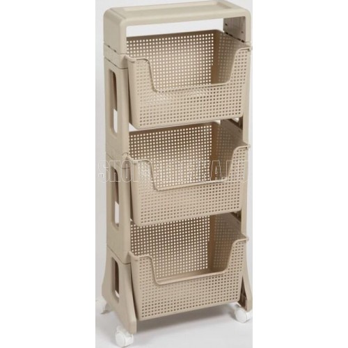 Материал: полипропилен. Цвет: латте. Количество полок: 3 шт. Наличие колес: есть. Ширина: 395 мм. Высота: 943 мм. Глубина: 260 мм.