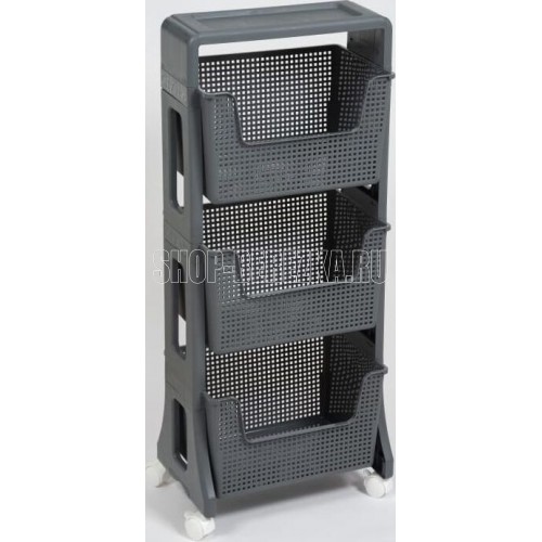 Материал: полипропилен. Цвет: серый. Количество полок: 3 шт. Наличие колес: есть. Ширина: 395 мм. Высота: 943 мм. Глубина: 260 мм.