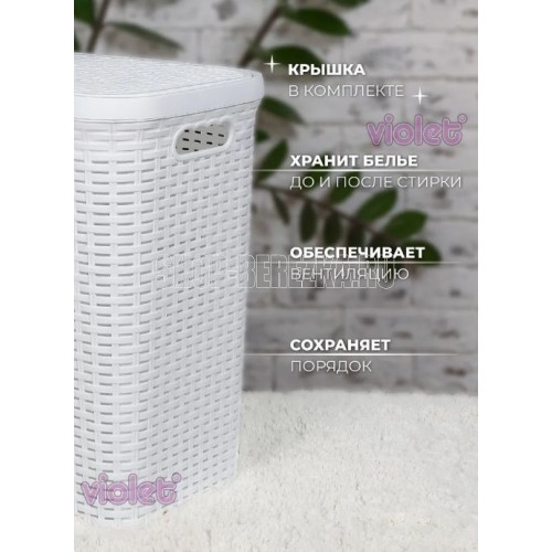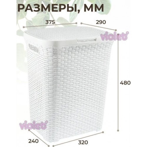 Корзина для хранения белья с крышкой Ротанг, объем 40 литров, выполнена из прочного пластика и станет удобным контейнером органайзером для хранения вещей и одежды в стирку. С её помощью вы легко организуете любое пространство и наведете порядок в ванной комнате. Пластик не боится сырости, его легко содержать в чистоте, достаточно протереть влажной тряпкой. Такая корзина станет удобным и эстетичным дополнением в вашей квартире или доме и подчеркнет вкус и индивидуальность! Размеры изделия 37,5 х 29 х 48 см, цвет бельевой корзины - белый.