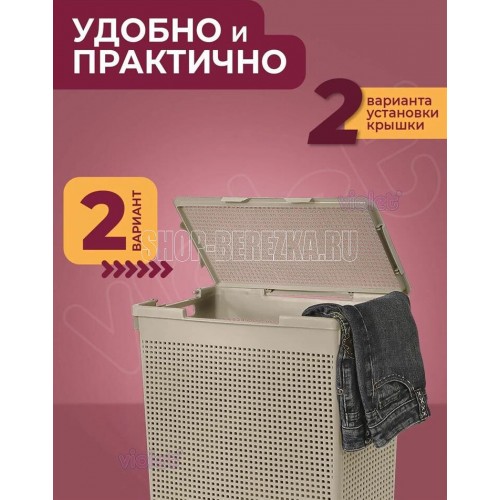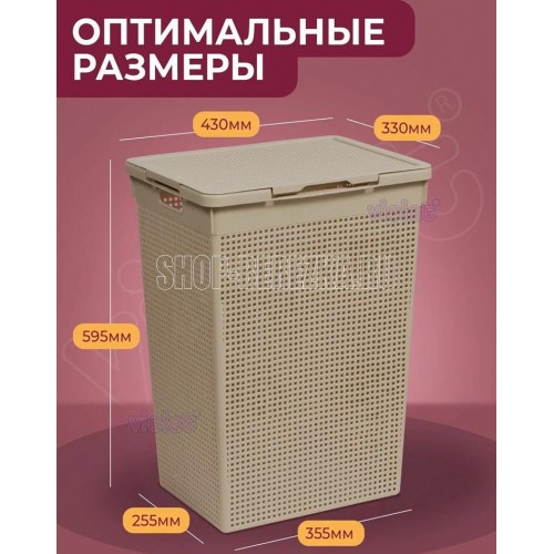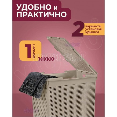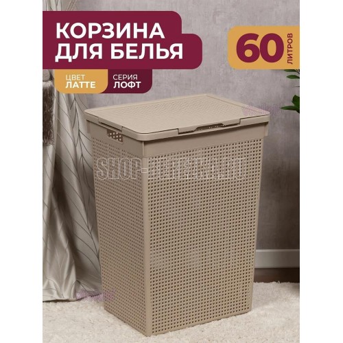 Корзина для белья "Лофт" с крышкой 60л (латте) Тип корзина Материал пластик, полипропилен Высота 37 см Длина 65 см Ширина 46 см Объем 60 л Особенности ручки для переноски, с крышкой Назначение для белья