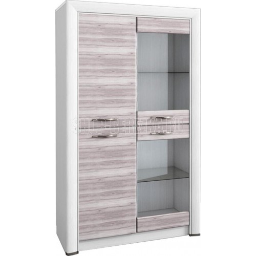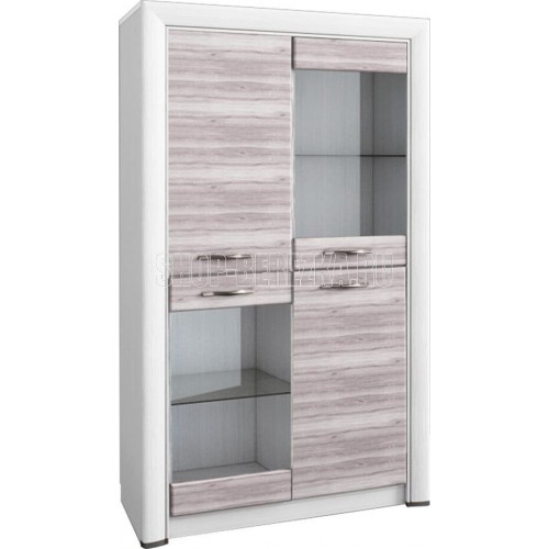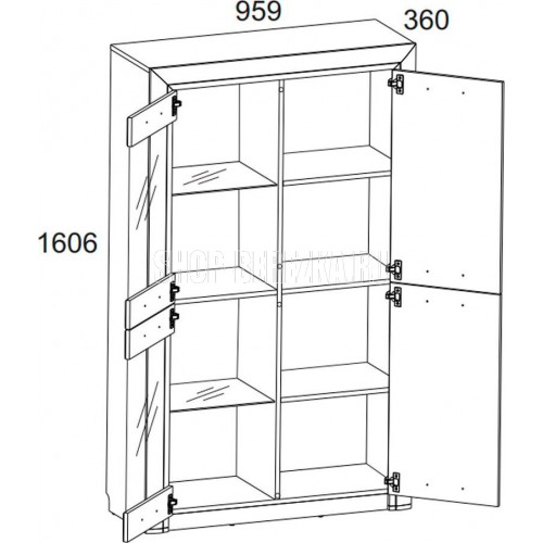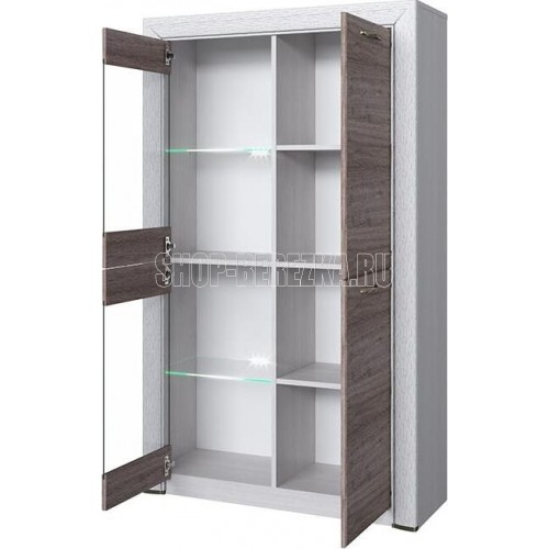 Шкаф-витрина Оливия 2V2D идеально вписывается в интерьер гостиной, столовой. Даёт возможность организовать место для хранения декора, посуды, памятных вещей, а также тех предметов, которые должны быть скрыты. Шкаф-витрина 2V2D может выполнять функцию барной зоны. Шкаф-витрина 2V2D – прямой. Имеет четыре отделения – два с полками из закалённого стекла за витринами (2V), два с полками из ЛДСП за глухими дверями (2D). Дверцы распашные, крепятся на петли к боковинам. Основные характеристики: -фасад - ЛДСП (18 мм), цвет – Дуб анкона, закалённое стекло (4 мм); -дизайнерские декоративные планки с патиной (МДФ); -металлические ручки (сплав цинка и алюминия); -четыре варианта установки дверей на витрине 2V2D; -дополнительная опция – светодиодная подсветка для полок из закалённого стекла (Klips LED). На одну полку идёт одна клипса, на которой располагается три светодиода. Характеристики Коллекция Оливия Ширина 959 Глубина 360 Высота 1609 Материал ДСП ламинированная/МДФ/Стекло Вес_1С 61.12 Срок с