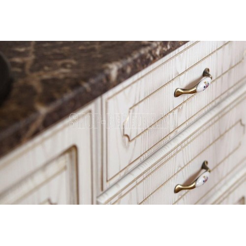 Кухонный модуль (стол рабочий) кухни АНЖЕЛИКА. Глубина рабочего стола со столешницей 600 мм. Высота рабочего стола со столешницей 860 мм. Комплектуется столешницей Королевский Опал Темный или Королевский Опал Светлый. Влагостойкая, толщина 38 мм. Стоимость модуля указана без столешницы. Вместительные, очень удобные глубокие ящики, идеальны для размещения около плиты, для хранения кастрюль и принадлежностей для готовки. Стол рабочий на 500 мм с тремя ящикам. Цоколь и столешница не входят в стоимость рабочих столов и навесных шкафов. Направляющие ящиков - шариковые, усиленные, шириной 45 мм. Корпус изготавливается из ЛДСП. Фасады выполнены из МДФ, окрашены, патина нанесена вручную, сверху защищены матовым итальянским лаком. Ножки регулируемые по высоте 100 мм. Габариты: ВхГхШ (820х510х800)мм. Стиль: Классика. Геометрия: Прямой. Материал каркаса: ЛДСП. Материал фасада: МДФ. Цвет корпуса: ясень. Цвет фасада: ясень.
