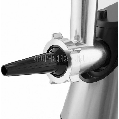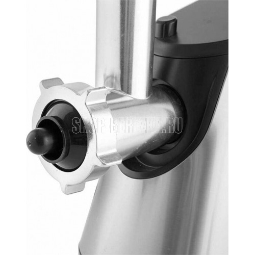 Номинальная потребляемая мощность 3000 Вт, Производительность 2,5 кг/мин, Скорость вращения шнека 230 об/мин, Диаметр отверстий решеток для измельчения и рубки 3, 5, 7 мм, Нож из высококачественной нержавеющей стали, Насадка для приготовления домашней колбасы, Две насадки «КУББЕ», Удобный толкатель с отсеком для хранения насадок, Отсек для компактного хранения шнура питания, Функция РЕВЕРС обеспечивает простоту очистки шнека при забивании продуктами, Система защиты двигателя от перегрузок и перегрева.