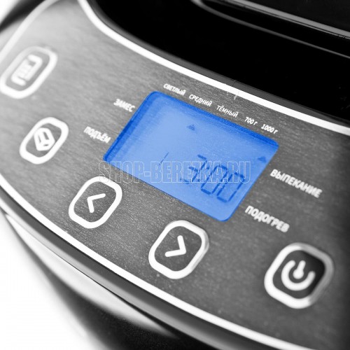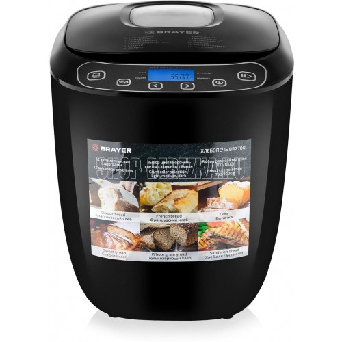 Мощность 550 Вт. 12 автоматических программ. Выбор размера выпечки 700/1000 гр. Пластиковый корпус. Форма для выпечки с антипригарным покрытием и лопастью для замеса теста. Мерные ложка и стакан. Книга рецептов в комплекте. Функция выбора цвета корочки: светлая, средняя, тёмная. Функция памяти до 10 минут. Добавление дополнительных ингредиентов. Звуковой сигнал по окончании работы. Таймер – отсрочка запуска 13 часов. Защита от перегрева. Поддержание температуры после выпекания 60 мин. Электропитание 220-240В., 50 Гц..