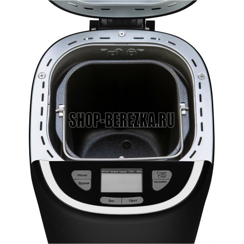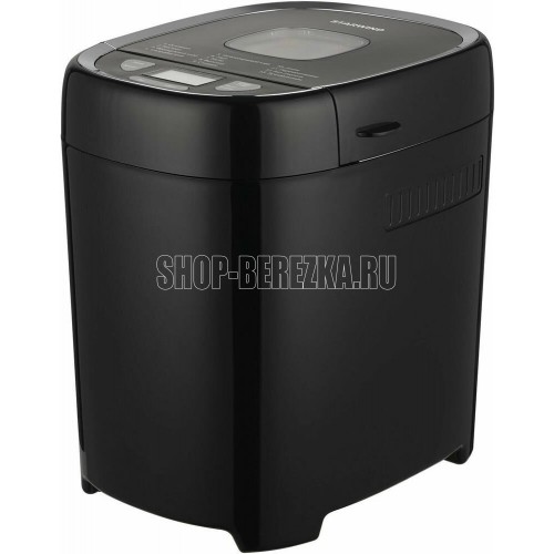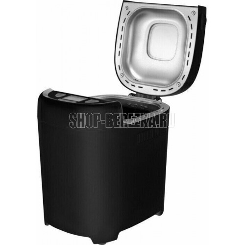 Хлебопечь. Мощность 550 Вт. Максимальный вес выпечки 900г. Количество размеров выпечки 700/900г. Регулировка веса выпечки. Формы выпечки: буханка. Антипригарное покрытие формы. Программ приготовления 13. Поддержание температуры. Выбор цвета корочки. Цвет черный. Материал корпуса: пластик.