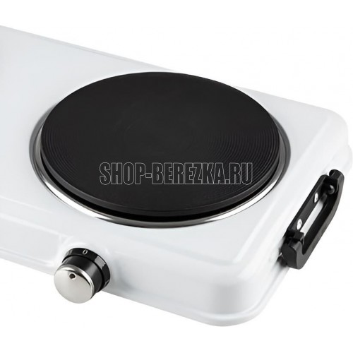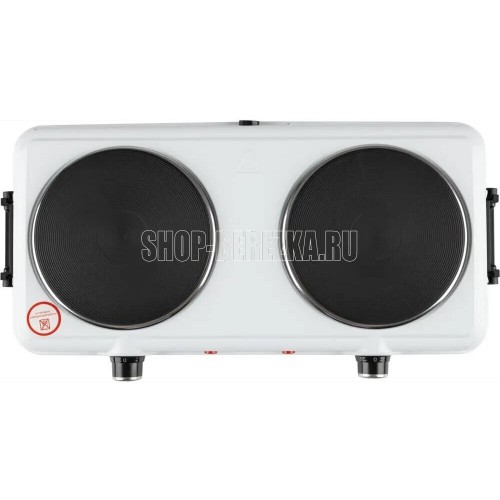 Размер конфорок 155 мм + 155 мм Световой индикатор работы Плавная регулировка температуры конфорки Защита от перегрева Мощность конфорок 1000 Вт + 1000 Вт Удобные ручки для переноски