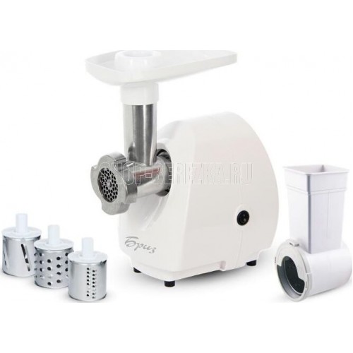 Максимальная мощность — 1000 Вт. Максимальная производительность — 1,3 кг/мин. В комплекте: решётка 5 мм - 1 шт - пластиковый колпачок 1 шт - приставка овощерезка с 3 барабанами (крупная, мелкая терка и шинковка). Преимущества: двойная защита двигателя от перегрузки, высокое размещение шнековой камеры, отсек для хранения шнура питания. экономичное энергопотребление