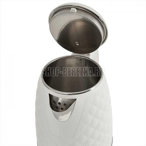 Параметры Объем 1,6 л Номинальная потребляемая мощность 1500 Вт Описание Чайник электрический предназначен для нагрева воды в бытовых и аналогичных условиях Двойной корпус: внутренний - из высококачественной нержавеющей стали; внешний корпус из пластика Цвет: белый Закрытый нагревательный элемент из нержавеющей стали Вращение корпуса на 360° Отметка максимального уровня воды внутри корпуса Световой индикатор работы Отсек для хранения электрошнура Автоматическое отключение при закипании Блокировка включения без воды Упаковка: цветная коробка