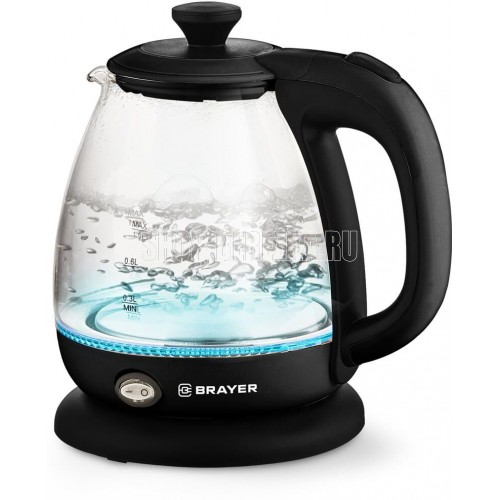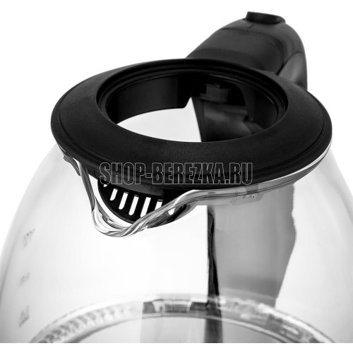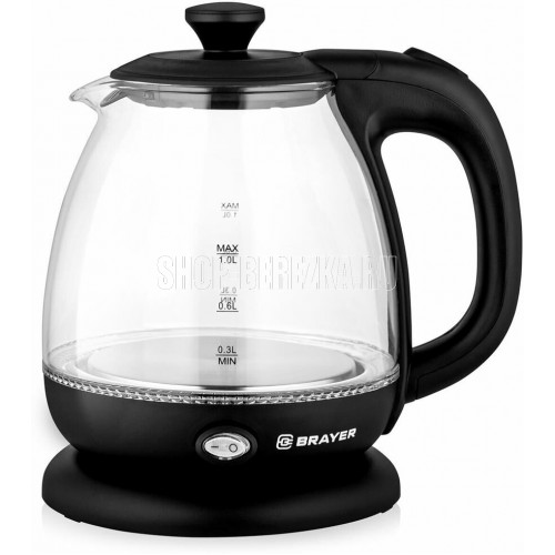 Максимальная мощность 1100 Вт Максимальный объем 1 литр Корпус из высокопрочного термостойкого стекла Внутренняя подсветка Автоотключение при закипании воды Отключение при отсутствии воды Моющийся фильтр Противоскользящее основание Электропитание 220-240 В, ~50-60 Гц