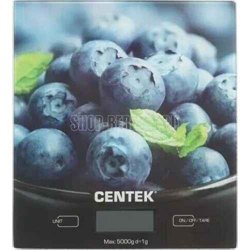 Весы кухонные Centek CT-2462 (Голубика) стеклянные, электронные, max 5кг, шаг 1г, шелкография, LCD