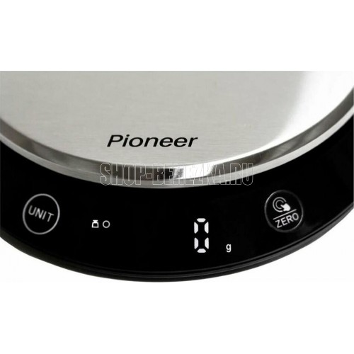 Электронные кухонные весы Pioneer PKS1011 Оборудованы датчиком высокой точности LED дисплей Сенсорное управление Материал платформы: нержавеющая сталь Материал основания: пластик Максимальный вес: 5 кг Определение объема молока и воды Индикация разряда батареи Индикация перегрузки Автоматическое отключение Автоматическая установка нуля