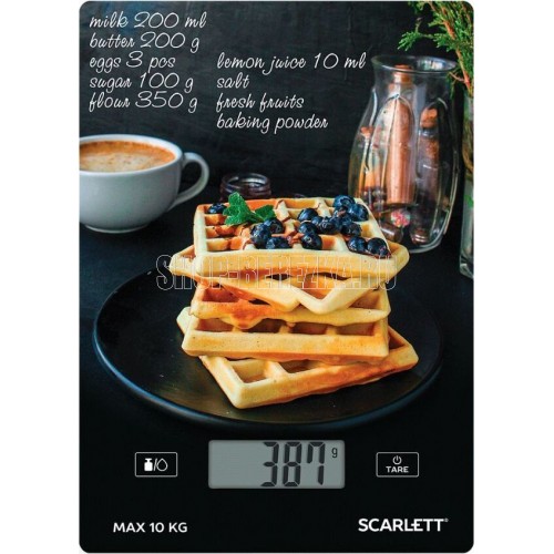 Электронные Кухонные весы Максимальный вес, кг: 10 Цена деления, г: 1 Единицы измерения: Граммы, фунты, унции, миллилитры Материал платформы: Ударопрочное стекло Индикатор заряда батарейки: Да Индикатор перезагрузки: Да Автоматическое отключение: Да Элемент питания: 2 батарейки типа ААА (включены в комплект) Цвет: Вафли
