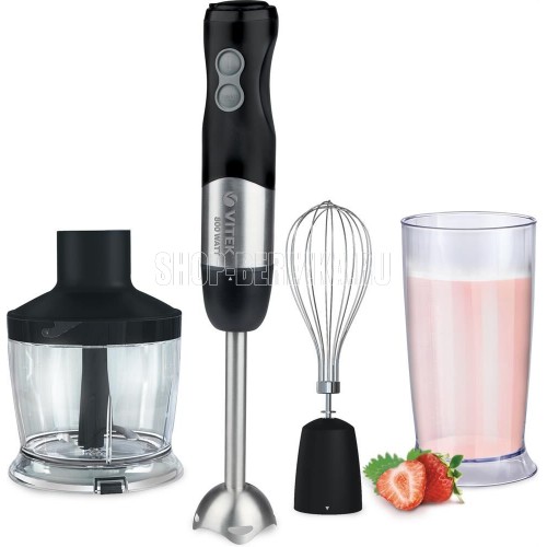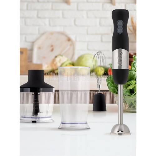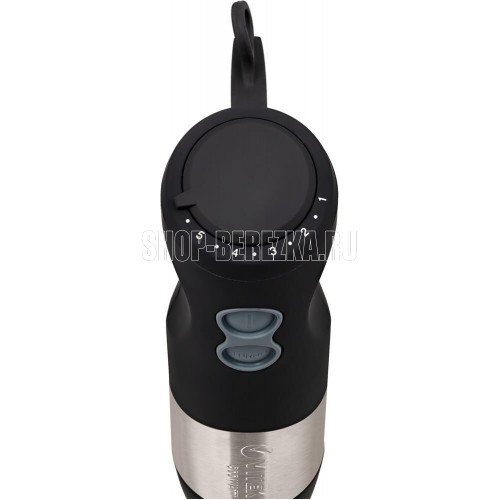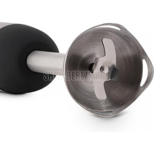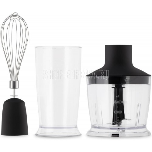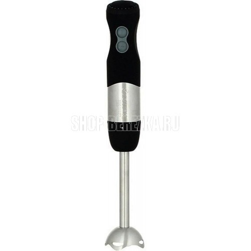 Блендер погружной. Мощность: 800 вт, Количество скоростей: 6, Турборежим, Плавная регулировка скорости, Управление: механическое, Материал корпуса: нержавеющая сталь/пластик, Материал погружной части: нержавеющая сталь, Емкость измельчителя: 500 мл, Емкость мерного стакана: 600 мл, Колка льда, Венчик для взбивания, Мерный стакан, Длина сетевого шнура: 120см, Измельчитель, Цвет: Черный.