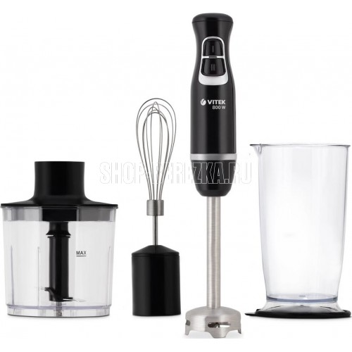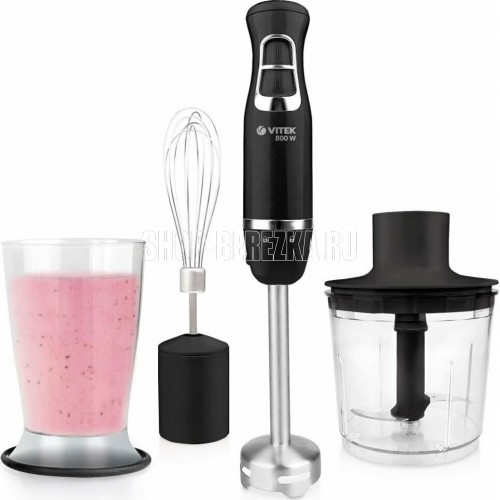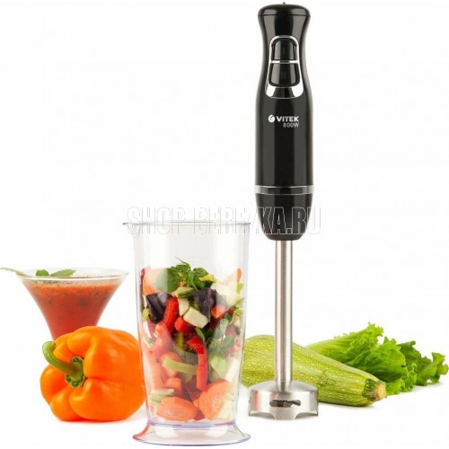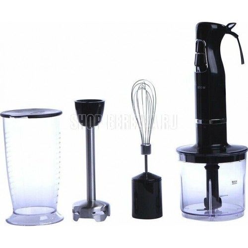 Блендер погружной. Мощность: 600 вт, Количество скоростей: 2, Управление: механическое, Материал корпуса: пластик, Материал погружной части: нержавеющая сталь, Емкость измельчителя: 400 мл, Емкость мерного стакана: 700 мл, Венчик для взбивания, Длина сетевого шнура: 120см, Цвет: Черный