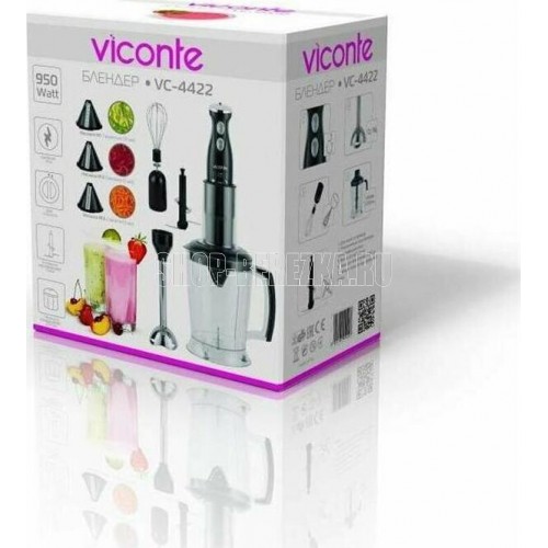 Погружной блендер, мощность 950W, современный эргономичный дизайн, пульсовый режим работы, 2 скорости, 4 лезвия из нержавеющей стали, металлическая нога блендера, венчик для взбивания, чаша с ножом для рубки и измельчения, 1250 мл; три насадки-спиралайзера для нарезки: тальятелли (10 мм), лингвини (5 мм) , спагетти (3 мм), автоматическая блокировка при неправильно установленной насадке, удобство и простота в обращении и чистке