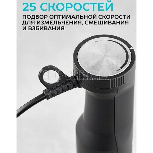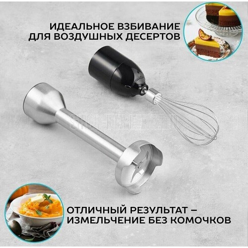 Тип: Погружной Мощность, Вт: 1100 Количество скоростных режимов: 25 Режим TURBO: Да Мини-измельчитель: Да Емкость мини-измельчителя, л: 0.6 Венчик для взбивания: Да Мерный стакан: Да Мерный стакан, л: 0.6 Материал погружной части: Металл Цвет: Черный