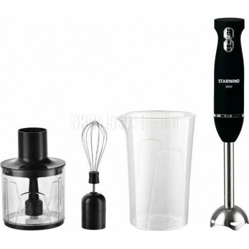 Блендер погружной. Мощность: 850 Вт, Импульсный режим, Количество скоростей / режимов: 1, Электропитание от сети, Материал корпуса: пластик, Материал ножей: нержавеющую сталь, Материал погружной части: нержавеющую сталь, В комплекте: Венчик для взбивания, Измельчитель, Мерный стакан, Цвет: Черный/серебро, Длина сетевого шнура: 1 метр, Срок гарантии: 12 месяцев.