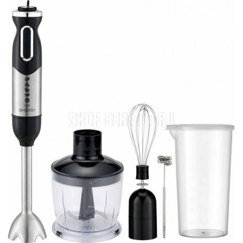 2 скорости работы Обычный и Turbo режим Регулятор скорости Ножи из нержавеющей стали Металлическая насадка блендер Стакан для смешивания 600 мл с крышкой Измельчитель 500 мл Венчик Вспениватель молока Петля для подвешивания Мощность 800 Вт Длина шнура 1,5 м