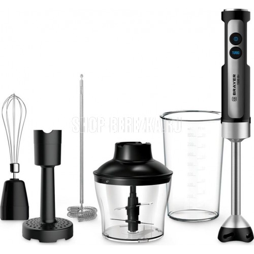 1256BR Блендер погружной BRAYER Погружной блендер BRAYER, 1500 Вт, капуч, пюре, венч, стак 800, изм