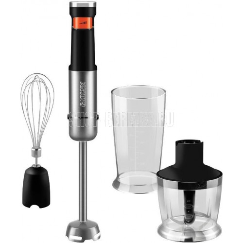 Комплексная защита элементов M-Pro - Прибор оснащен системой автоматического отключения в случае перегрева или перегрузки. Беспроводной погружной блендер с Li-ion аккумулятором ёмкостью 2000 мА*ч - нет привязки к розетке, можно обрабатывать продукт в любом месте (на природе, в квартире, на мастер-классах и т.д.). Большая ёмкость аккумулятора позволяет блендеру работать длительное время без подзарядки. Время работы зависит от типа обрабатываемого продукта и выбранного скоростного режима. Двигатель постоянного тока - длительная работа без перегрева, тихий. Курковое «педаль» управление скоростными режимами - чем сильнее давить на педаль, тем выше скоростной режим. 10 скоростных режимов - обработка как мягких, так и твёрдых продуктов. Нож с 4-мя лезвиями - быстро и равномерно измельчает, смешивает до однородной массы.