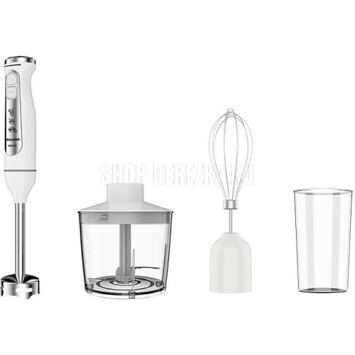 Параметры Максимальная мощность 1500 Вт Номинальная потребляемая мощность 600 Вт Объем чаши измельчителя 500 мл Объем мерного стакана 700 мл Описание Блендер электрический предназначен для смешивания, измельчения и взбивания продуктов и жидкостей в бытовых и аналогичных условиях Ножи из нержавеющей стали Три сменные насадки: насадка для смешивания венчик для взбивания измельчитель Мерный стакан Противоскользящие ножки чаши измельчителя Плавная регулировка скорости Режим «ТУРБО» Цвет: белый Упаковка: цветная коробка