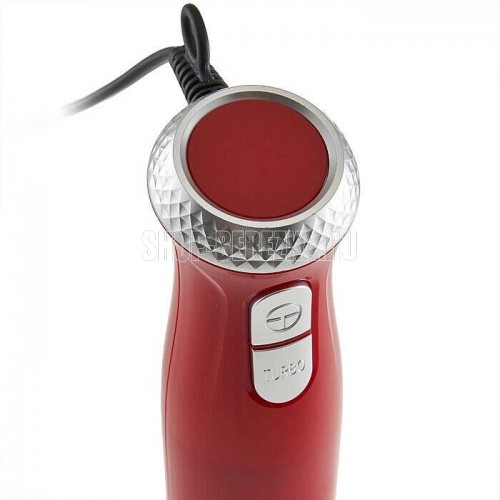 Параметры Максимальная мощность 1000 Вт Номинальная потребляемая мощность 400 Вт Описание Блендер электрический предназначен для смешивания, измельчения и взбивания продуктов и жидкостей в бытовых и аналогичных условиях Цвет: красный Нож из нержавеющей стали Специальная заточка лезвий Петелька для подвешивания Режим «ТУРБО» Упаковка: цветная коробка