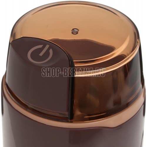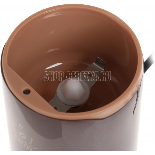 Номинальная потребляемая мощность 250 Вт, Объем 60 г, Пригодна для перемалывания кофе и специй, Нож со специальной заточкой лезвий из нержавеющей стали обеспечивает идеальный помол кофе, Режим работы: 30 секунд работы / 1 минута перерыв, Блокировка включения при снятой крышке, Цвет: коричневый.